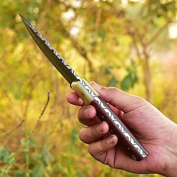 Whether you're camping, making kindling, or cooking outdoors, this handmade Damascus knife is built to handle it all. Lightweight yet tough, it’s the go-to choice for any outdoor activity — strong enough to withstand hard use in any condition.
