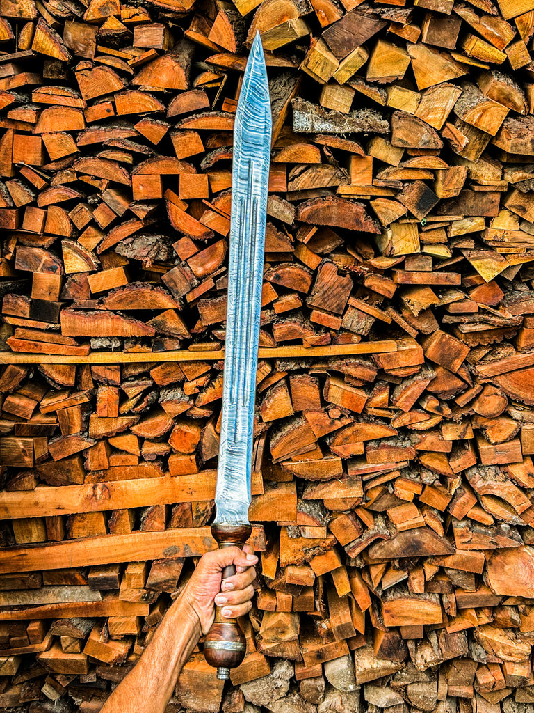 Made from premium layered Damascus steel material, this blade features bold, natural wave patterns unique to swords of Damascus. Razor-sharp and balanced, it’s ideal for display, training, or ceremonial use.